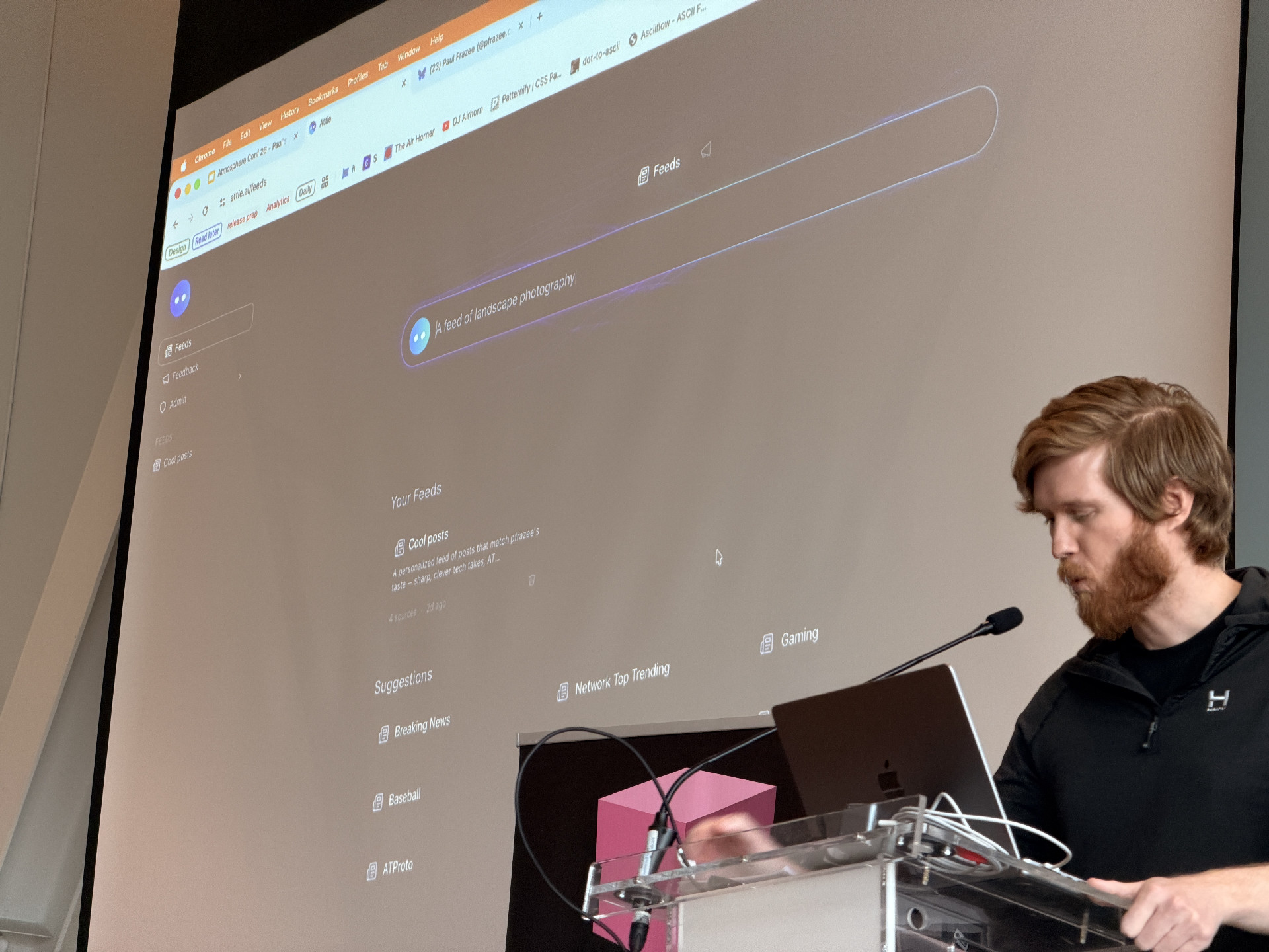 At ATmosphereCon @jay.bsky.team@bsky.brid.gy and @pfrazee.com@bsky.brid.gy just announced a new app called Attie, an agentic social feed builder that will automatically build a feed for you on ATProto with natural language.